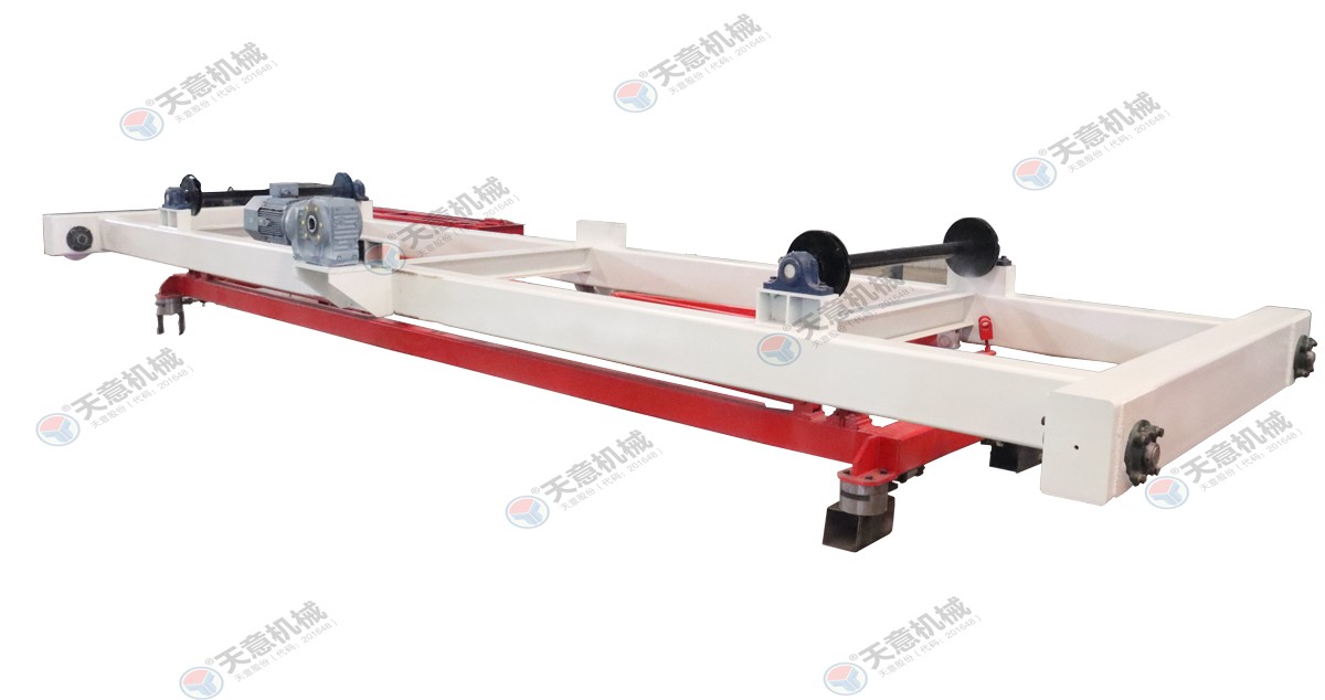 翻轉(zhuǎn)吊機(jī):抓取模箱翻轉(zhuǎn)90°,側(cè)立在切割小車上進(jìn)行切割;切割工段空翻脫模機(jī)將??蚍D(zhuǎn)90°,放在切割小車支座上進(jìn)行脫模,脫模后的模框與清理后的側(cè)模板進(jìn)行合模,合膜后的空模框被吊運(yùn)至模具回程軌道上進(jìn)行涂油處...