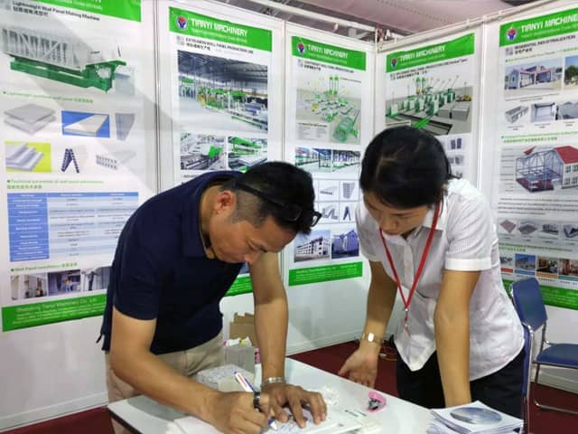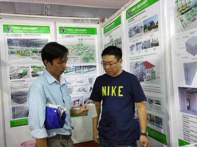 越南是亞洲經(jīng)濟發(fā)展速度的國家之一。近年來,越南正加大對基礎(chǔ)設施建設和主要城市居民住宅的改造力度,綠色建筑建材裝備缺口巨大,為適應市場需求,天意機械攜綠色建材設備參展了此次展會。展會期間,外貿(mào)銷售部李經(jīng)理,認真對待每位來訪的客戶,詳細向其介紹天意機械專利產(chǎn)品輕質(zhì)墻板生產(chǎn)線,復合墻板生產(chǎn)線,保溫裝飾一體化板生產(chǎn)線等產(chǎn)品的優(yōu)勢,以及設備在東南亞地區(qū)建筑建材市場的影響,展會現(xiàn)場就有多數(shù)客戶,初步簽訂了輕質(zhì)墻板生產(chǎn)線、復合墻板生產(chǎn)線加工生產(chǎn)訂單。