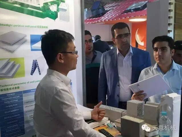 該展會國際展商主要來自于中國、土耳其、德國、瑞士、法國、英國、阿聯酋、韓國、美國、澳大利亞等二十多個國家和地區(qū),山東天意機械股份有限公司作為綠色建筑建材裝備行業(yè)里以研、產、銷和規(guī)?;a為重心的企業(yè)。一直秉承“誠信、創(chuàng)新、高效、利他”的企業(yè)文化精神,致力為滿足消費者的需求,在此次展會天意推出了適用于伊朗本地建筑建材市場的新型綠色建材裝備,讓每一個國內外消費者都能感受到天意機械的科研創(chuàng)新和服務。